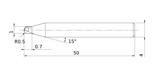 (Ball nose, Short cut length, 2 flute, For hard brittle materials)