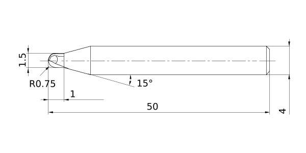 (Ball nose, Short cut length, 2 flute, For hard brittle materials)