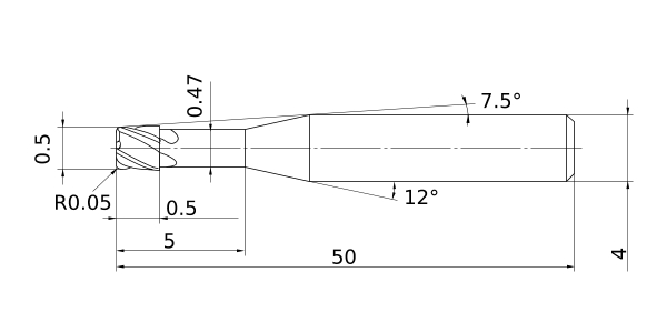(Corner radius, Short cut length, Long neck, 2- 4 flute)