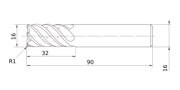 Solid End Mills >VQ6MHVRBCH >VQ6MHVRBCHD1600R100