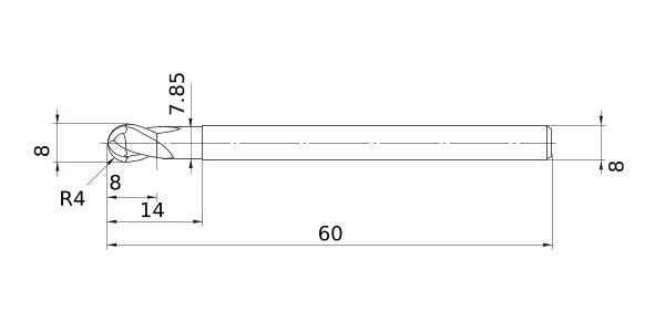(Ball nose, Short cut length, 2 flute, Short shank)