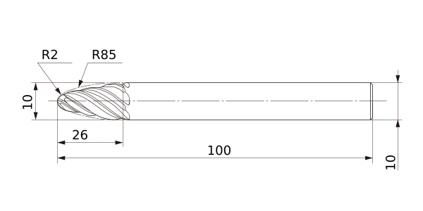 Solid End Mills >VQT6UR >VQT6URR020R085S10
