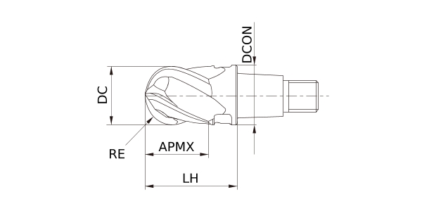 (Ball nose head, 4 flute, For hardened steels)