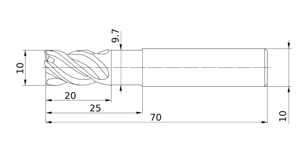 (End mill, Medium cut length, 2.5xDC Neck recess, 4 Flute irregular helix)