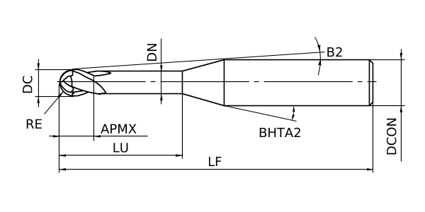 (Ball nose, Short cut length, 2 flute, Long neck)