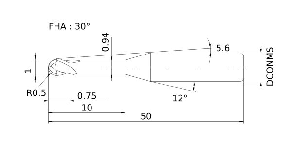 (Ball nose, Short cut length, 2 flute, Long neck)
