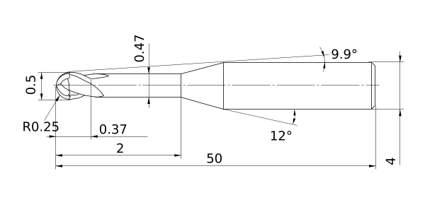 Solid End Mills >VFR2XLB >VFR2XLBR0025N020
