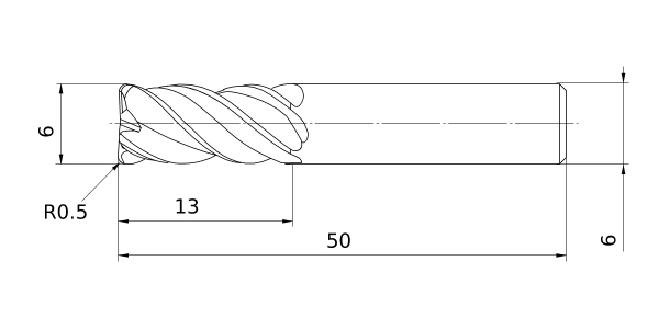(Corner Radius, Medium cut length, 4 flute)