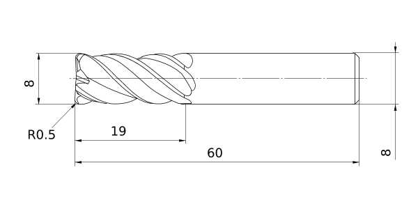 (Corner Radius, Medium cut length, 6 flute)