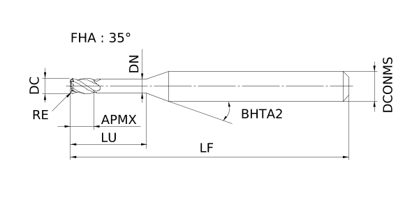 (Corner radius, Short cut length, 4 flute, Long neck)