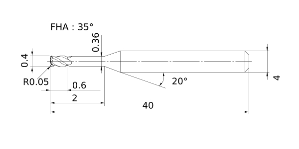 Solid End Mills >VQ4XLRB >VQ4XLRBD0040R005N020