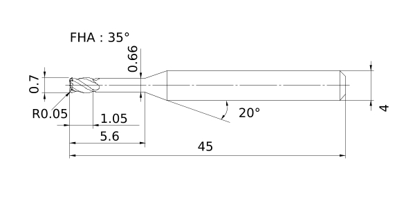 (Corner radius, Short cut length, 4 flute, Long neck)