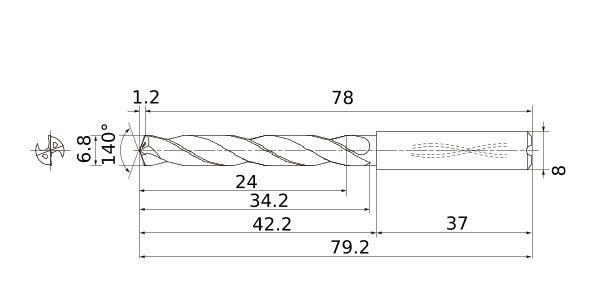 | Tolerancia máx. de diámetro de filo de corte | 0.021 |