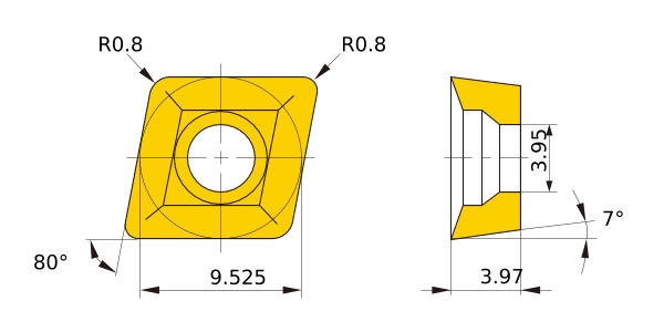 Plaquette amovible pour outils rotatifs >CCMX09T308EN-A