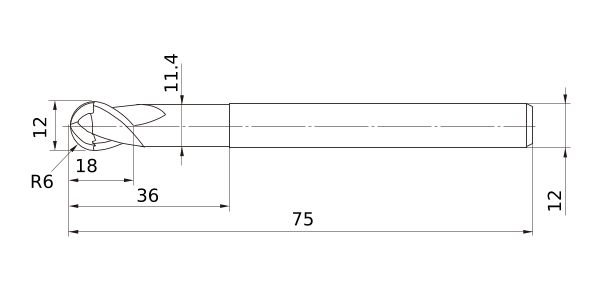 Frezy palcowe monolityczne >AM2MB >AM2MBR0600A075