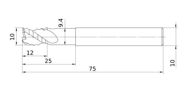 (Frez palcowy do obróbki zgrubnej, część robocza krótka, 3 ostrza)