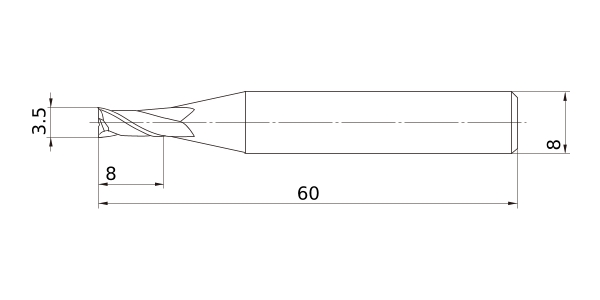 (End mill, Short cut length, 2 flute)
