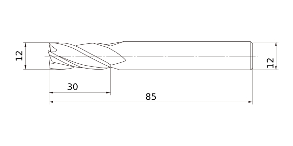 (End mill, Medium cut length, 4 flute, Centre cutting)