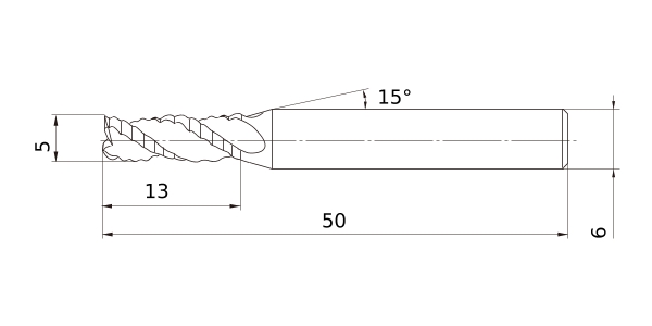 (Roughing end mill, Medium cut length, 3 flute, For aluminium alloy)