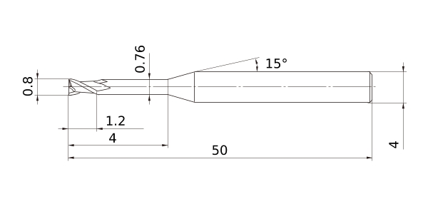 (End mill, 2 flute, Long neck, For copper electrodes)