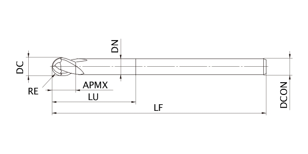 (Ball nose, Long neck, 2 flute, For copper electrodes)