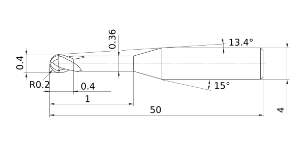 (Ball nose, Long neck, 2 flute, For copper electrodes)