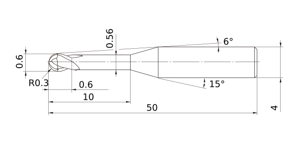 (Ball nose, Long neck, 2 flute, For copper electrodes)