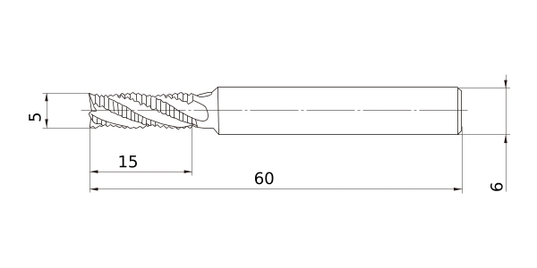 (Roughing end mill, Medium cut length, 4-6 flute)