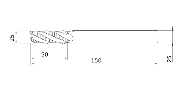 (Roughing end mill, Medium cut length, 4-6 flute)