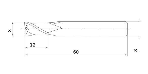 (End mill, Long cut length, 2 flute)
