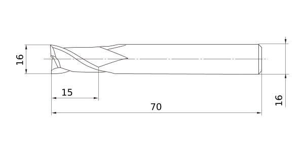 (End mill, Long cut length, 2 flute)