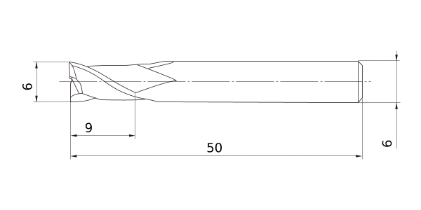 (End mill, Long cut length, 2 flute)