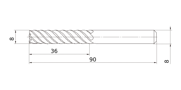 (End mill, Long cut length, 6 flute)