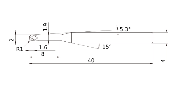 (Ball nose, Medium cut length, 2 flute, Short shank)