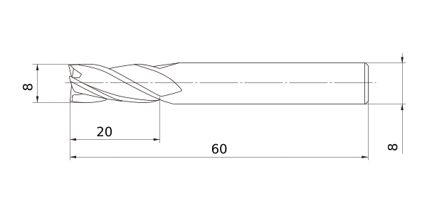 (End mill, Medium cut length, 4 flute, For hardened materials)