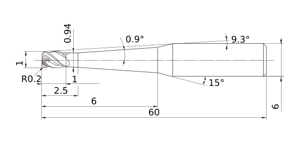 Solid End Mills >VFHVRB_TAPER_NECK >VFHVRBD010R02N006T09