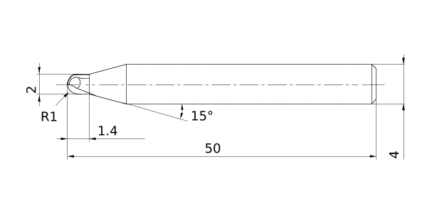(Ball nose, Short cut length, 2 flute, For hard brittle materials)