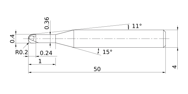 (Ball nose, Short cut length, 2 flute, Long neck, For hard brittle materials)