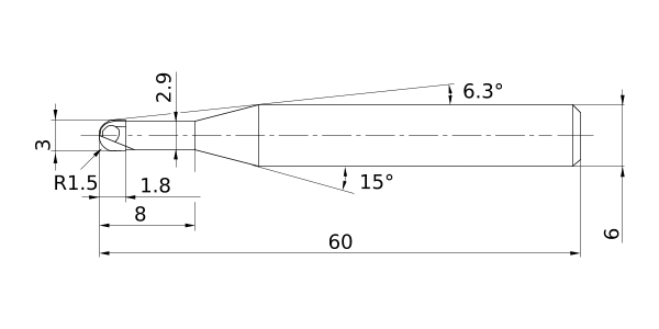(Ball nose, Short cut length, 2 flute, Long neck, For hard brittle materials)
