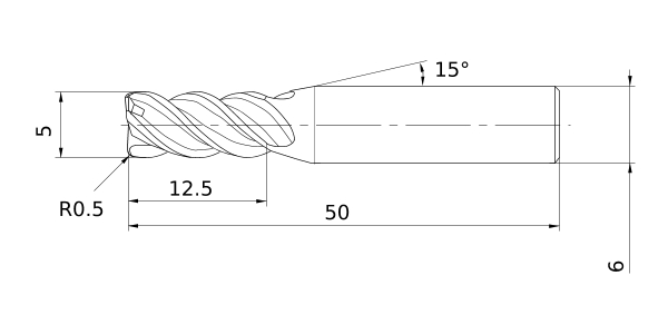 (Corner radius, Medium cut length, 4 flute, Irregular helix flutes)