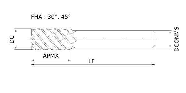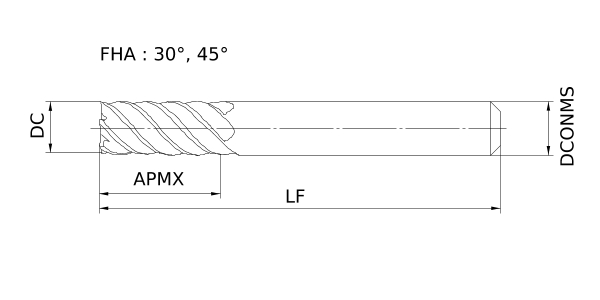 (End mill, Medium cut length, 4/6 flute, For hardened materials)