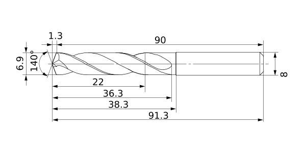 | Tolerância mínima do diâmetro da corte | -0.022 |