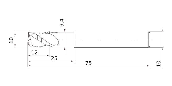 (Topo reto para desbaste, comprimento de corte curto, 3 cortes, para ligas de alumínio)