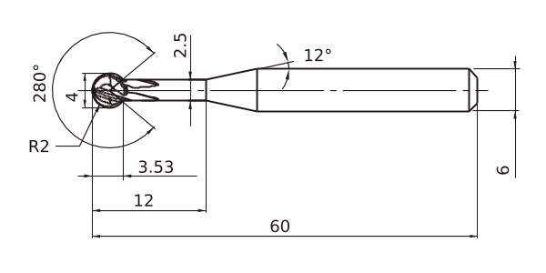 Fresas de topo inteiriças >VQ4WB >VQ4WBR0200N12E280