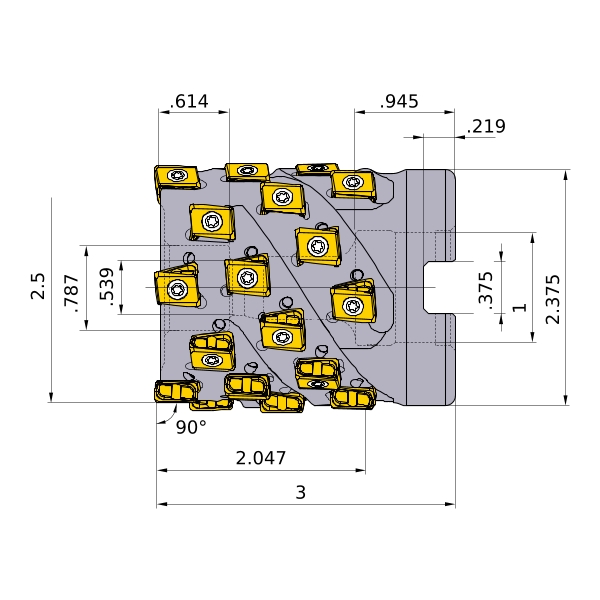 Indexable End Mills >VPX300_SHELL_INCH >VPX300UR2.5004AA2020