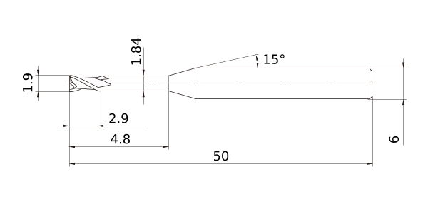 (End mill, Short cut length, 2 flute, 6mm shank)