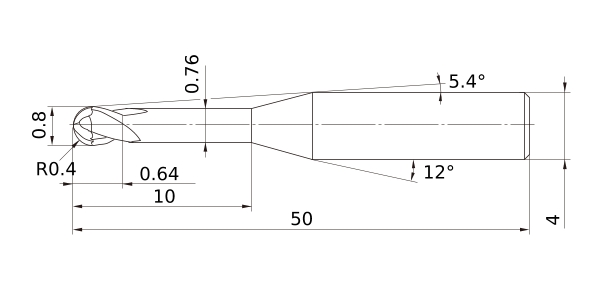 (Ball nose, Long cut length, 2 flute, For hardened materials)