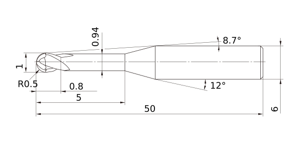 (Ball nose, Long cut length, 2 flute, For hardened materials)