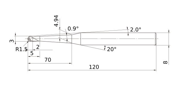 (Ball noze, Medium cut length, 3 flute, Taper neck)