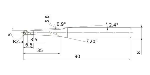 (Ball noze, Medium cut length, 3 flute, Taper neck)